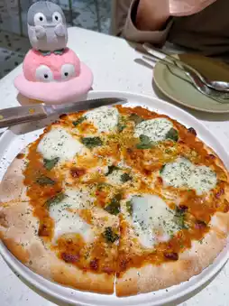 Main course ordered a pizza and a pasta🌟 Pizza chose a simple and delicious margarita pizza🤤 The pizza is served with fresh and appetizing tomato sauce, rich mozzarella cheese and fragrant vanilla, exuding a rich tomato aroma