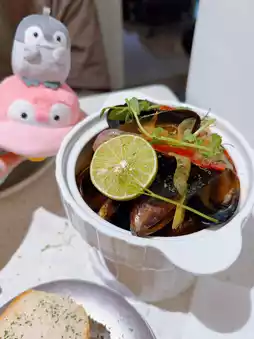 Another choice of tom yam sauce blue mussel pot ❤️ The pot is made with rich tom yum sauce as the base, and then added with fresh mussels, once served, the aroma is fragrant, super attractive😚 The soup is sour and spicy just right, with a freshness effect, every bite is full of freshness🌟