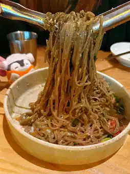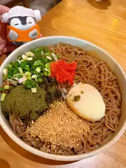Noodles chose a mint fish oil soba noodles ❤️ The portion is plentiful and the noodles are strong 🤤 The two girls are full to the chest 😆 The attached mint, spring onion, hot spring egg and other ingredients stir well together to eat, eat rich flavors, smooth and delicate taste, really delicious 🌟