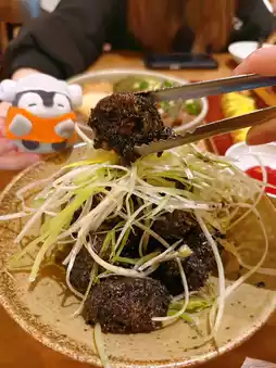 Also chose a very surprising black sesame fried chicken 🥰 The fried chicken is fried crispy on the outside and tender on the inside, very crispy 🤤 on the crispy crust, dipped in rich black sesame sauce 😚 It feels like eating sesame paste 🤣 Very special and interesting 🥴