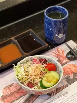 The fat is evenly distributed, and the thinly grilled beef is just right, charred on the outside and tender on the inside, with a fresh aroma of garlic slices, and a mouthful of the sweet aroma of fat. You can dip it in a little sesame sauce.