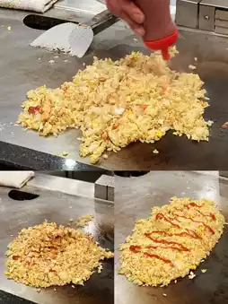 The distinctly grainy fried rice is stained with golden egg drops and full of wok aroma, topped with sour and sweet plum sauce, and topped with crispy pan-fried salmon, which is tender and juicy and full of fish fat and sweetness.