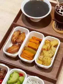 During lunch hours, three energy lunch options are available, each served with a choice of the daily sweet soup or a cup of coffee.