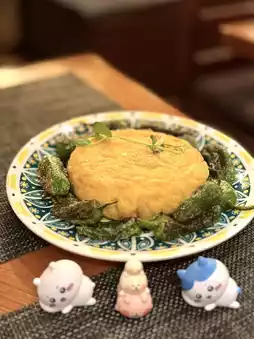 The side dish of small green peppers is fresh and not spicy, and sea salt enhances the taste. It's simple and satisfying!