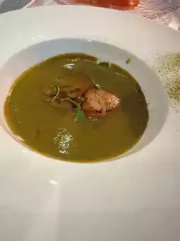 🌟Seaweed oyster cream soup with fried scallops in lobster oil