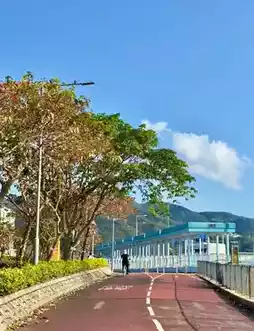 Starting from Tai Wai and cycling along the coast, you'll soon be riding along the moat of Sha Tin. The☀sun shines through the trees on both sides of the road, making it incredibly comfortable. Further ahead, you'll be accompanied by the moat and the bridges🌉 over the river, as beautiful as in a cartoon.