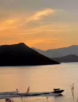 Sitting here quietly, watching the sunset, time seems to slow down. The people on the beach and dam seem to be moving in slow motion, a picture of tranquility.