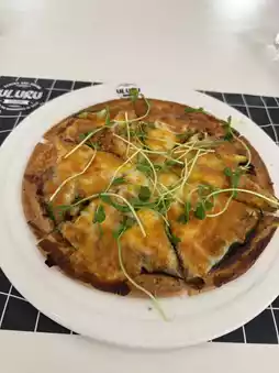 Fresh prawns are baked very crispy, paired with semi-melted cheese.