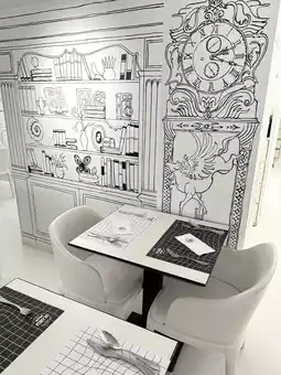 🎹 "ULURU" designed with black and white hand-painted murals is a beautiful photo restaurant.