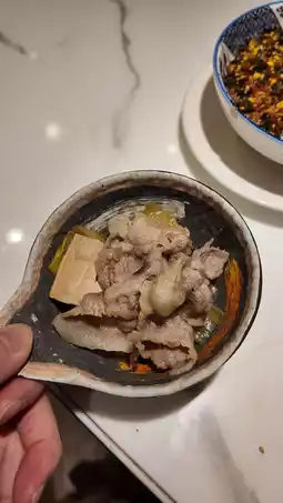 The taste of the pork is good, and it is cooked to order. The soy sauce tastes sweet and tasty