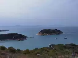 To reach Tung Tau Teng, you need to turn left from the country trail onto a small, rather rugged path. Because few people walk this way, most of the path requires bushwhacking. Be careful of branches hitting your face and vines tangling your feet. From here, you can enjoy a distant view of Cape D'Aguilar (Figure 19) and the Sai Kung Peninsula (Figure 20). The sea is dotted with windsurfers, and eagles soar in the sky. The scenery is beautiful and makes the journey worthwhile.