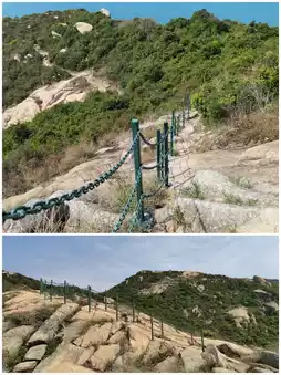 Returning to the country trail, you pass Ngau Wu Teng (Sunrise Pavilion). The steps down the hill are a popular photo spot (Figures 1-3).