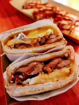 🥙Slow-roasted Chicken Leg, Cheese and Egg Toast (HK$56): Thick-cut slow-roasted chicken legs are so tender and juicy! Sandwiched with runny eggs and waterfall cheese, the toast absorbs the essence of the sauce, which is devilishly satisfying