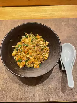 The fried rice is rich in ingredients, with beef, eggs and a variety of vegetables. The fried rice is not dry.