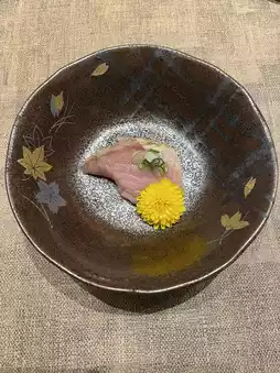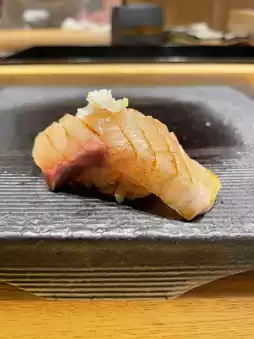 The left-mouth fish has a lighter taste, the fish is slightly tough; the left-mouth fish is wrapped in seaweed, which is sweet; the master recommends ordering mustard soy sauce or sour sauce to eat, adding some basil flowers for more floral flavor.