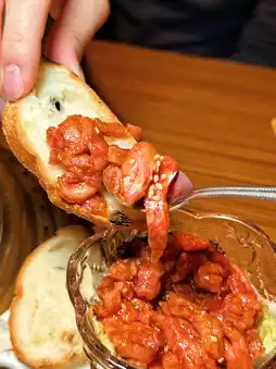 The shopkeeper will first roast the crisp on the oven and then add the seasoned wagyu beef