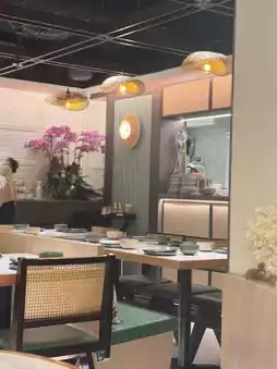 The restaurant is decorated with a unique design, blending Nordic style. The shop has gold and copper strips to match the white walls, bringing out a sense of luxury, noble and elegant. The restaurant is filled with soft Vietnamese songs.