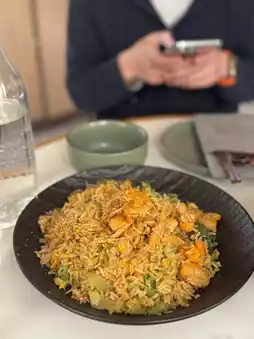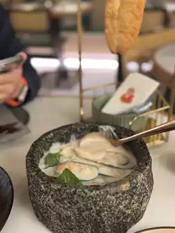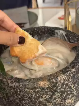 The fried dough sticks are hot and crispy, very IG-able when presented, a whole strip of fried dough sticks hanging on a golden shelf, looks exquisite, and can be handy for you to unfold with scissors, easy to eat. The stone-ground coconut laksa is full of lemongrass clove aroma and moderately sweet. Dip the fried dough sticks in coconut juice. It's delicious! The mussels were fresh and tender.
