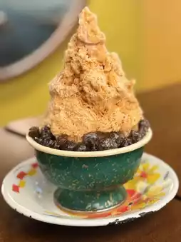 Giant Thai milk tea shaved ice, topped with super fragrant Thai milk tea and paired with pearls, it's so delicious