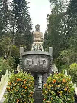 Tian Tan Buddha was built in 1993 and is now the mai center of Buddhism in Hong Kong. The Buddha is a large bronze statue standing 34-meter high, and the ground below is surrounded by smaller bronze statues of offering flowers, incense, candles, lanterns, fruits, and music to the Buddha, symbolising the Six Perfections of the Buddha's Enlightenment: generosity, morality, patience, enthusiasm, meditation and wisdom. If anyone comes to Hong Kong, recommend coming to worship and ask for blessings from the Tian Tan Buddha.