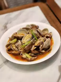 The clams are paired with a spicy sauce that is not too overpowering. The spiciness is just right, enhancing the seafood flavor, making it irresistible.