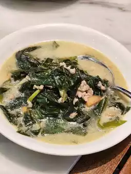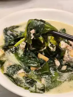 This dish is made with seaweed sprouts and chicken broth. The seaweed sprouts are fresh and sweet, and the chicken broth is flavorful. The broth is clear and sweet but still rich. This has become one of my favorite dishes recently.