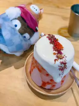 Strawberry milkshake milk cover snow mountain is also a must try 😍 milk cover is made very beautiful and attractive 🥰 girlish heart full ❣️ smoothie drink smooth and cool, milk taste mellow ☺️ sweet and fresh, very good 🤗