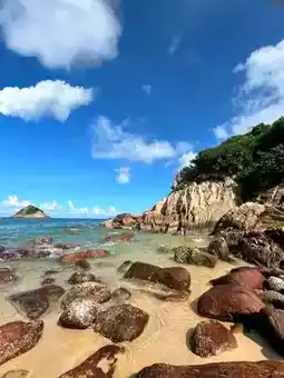 "SHEK O Beach" is located in the southeast of Hong Kong. It is a beautiful, quiet beach with clear water and soft, smooth sand. This place is suitable for sunbathing, sitting on a beach chair, chilling and reading a book (this costs money, as far as I saw on the sign, 2 beach chairs and 1 umbrella, $150). You can go swimming here. There is a free shower. The day we went, the weather was great, not hot at all. When we tried to touch our feet in the sea water, the water was cool and refreshing. In addition to sitting on the beach, we can also walk around the village. There are many cute corners to take pictures. Most importantly, don't forget to try the local food.