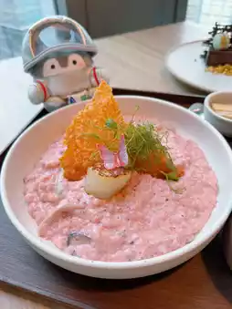 Today at the Twin Plaza in Kai Tak, I found a very chill Fusion restaurant 🥰 The restaurant environment is open and spacious, the wooden main tone design is warm and comfortable ❤️ Outside the window can overlook the high-rise city view of Kai Tak, very good 👍