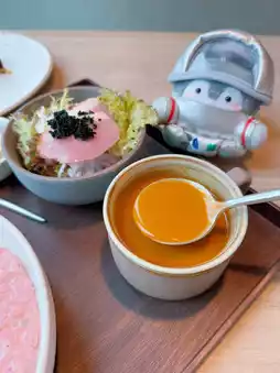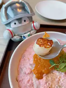 Must try the restaurant's main apple wood smoked French goose liver ✅ The smoked effect when served with the lid is excellent 🫶 100 points for taking pictures ❤️ The meal is exquisitely presented with care, very pleasing to the eye 😆 The goose liver melts in the mouth, soft and smoky, paired with fresh bananas and strawberries to eat together, oily but not greasy 🌟 full of taste 😋