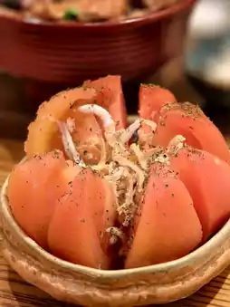 Tokushima mackerel tomatoes are a very appetizing snack. A large tomato๐