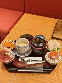 The four-color sashimi set meal has 4 bowls of mini sashimi rice bowl, including soy sauce-marinated tuna with sashimi rice bowl, sailfish rice bowl, soy sauce-marinated egg with wood fish silk rice bowl, and sashimi-marinated seafood rice bowl. The sashimi rice bowl is thick and fresh The silk rice bowl seems simple, but full of wood fish flavor. I like a set meal with all 4 bowls of mini sashimi rice bowl.