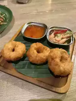 The freshly fried shrimp cake is very fluffy and delicious, accompanied by a small plate of salad, very authentic shrimp cake~