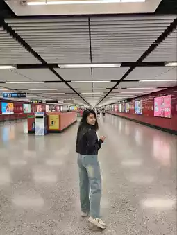 Take the red line of the MTR 🔴 ➡️ The train will pass through Hong Kong Bay to Hong Kong Island. Then get off at Central Station, which is the last station on the red line, so there will be a lot of people.