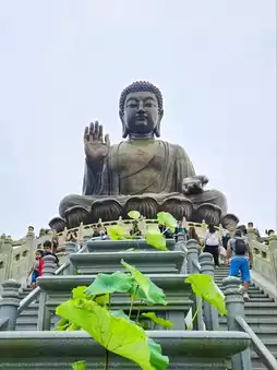The world's tallest outdoor bronze seated Buddha! The majestic 34-meter-high Buddha is located on the top of Ngong Ping, overlooking the secret mountain and sea at 360 degrees. You must take photos of the lotus seat relief and the "Heart Sutra Forest" bamboo forest Zen! ✨Visit Po Lin Monastery, taste authentic vegetarian food, and take the Ngong Ping 360 cable car to enjoy a panoramic view of the Hong Kong-Zhuhai-Macao Bridge~