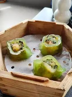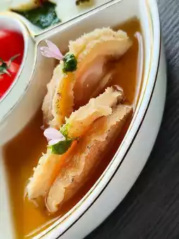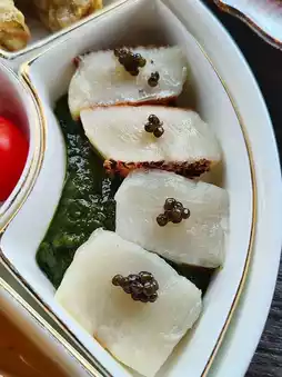 We ordered the Chao Yat Five Delicacies for HKD 328, which includes drunken abalone, peppercorn scallops, marinated goose liver, fried meat dumplings, and tomato walnut salad. The best dish was the peppercorn scallops, which were pan-seared on both sides, giving them a smoky flavor and a fresh, bouncy texture. The green sauce had a fragrant peppercorn aroma, adding layers of flavor.