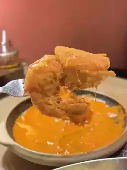 Fresh grapefruit, sandwiched with bouncy prawns, crispy coconut shreds, fried onions, sweet and sour tamarind sauce, very appetizing!