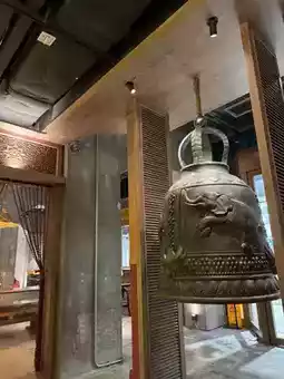The decor is very characteristic, once you enter the door you see a large copper bell, TukTuk car seats, rattan woven lamp, and vinyl disc corner, many photo spots!