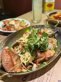 Add the Northeast sour and spicy sauce (lime + fish sauce + chili flakes), slightly spicy to enhance the flavor, and the accompanying cucumber is sour and quite refreshing!