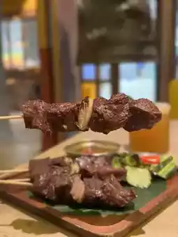 Four skewers per serving, wagyu beef with charcoal flavour, bite the gravy very juicy!