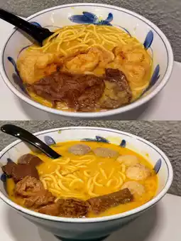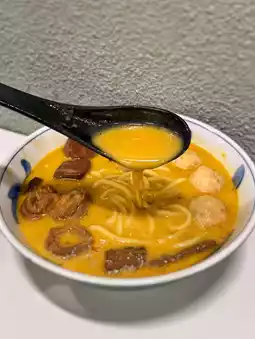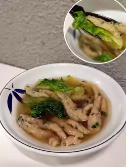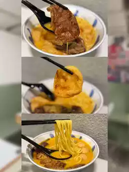 ↪Oil noodles $12│Fish curd $12│Stewed eggs $12│Stewed beef tendon $15│Beef brisket juice│Secret golden chicken soup +$5
