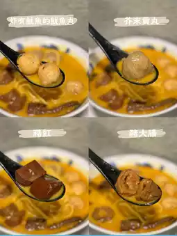 ↪Oil noodles $12│Pork red bean curd $12│Pork large intestine $15│Fried squid balls with squid $12│Mustard rice balls $12│Beef brisket juice│Secret golden chicken soup +$5