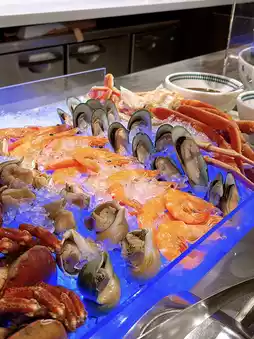 There are plenty of buffet dinner styles, such as frozen seafood with bread crab, lobster, long-legged crab, mussels, etc. I think friends who eat frozen seafood can be satisfied, sashimi has six, are mainland styles, such as salmon, red mussels, sweet shrimp, octopus and so on