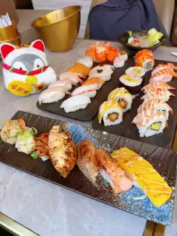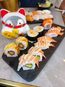 There are many choices of sashimi sushi ❤️ The sashimi has the essential salmon, herring, red shrimp, bacon, squid, sashimi, etc. 😍 All thick cut and large pieces, bright and delicious color 😆 super high quality 👍