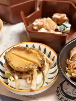 In addition to the black and white soup base, there is also a series of black and white snacks. The black series snacks include black snow-white wasabi tofu, crab roe ink sausage, and fried chicken. A lot of refreshing crab roe is added to the tofu, which tastes good. The white series snacks include white vine-flavored abalone tofu, fried mayonnaise chicken, and fish-flavored preserved egg tofu. The abalone is tender and not tough. And it is cut in half to make it easier for diners to share. Other snacks that are not in the black and white series include the traditional method of mincing abalone with a strong wine and white flavor and abalone with grapefruit sauce. All abalones are free to eat, so eat a few and you can easily make your money back!