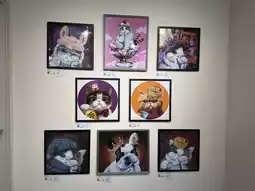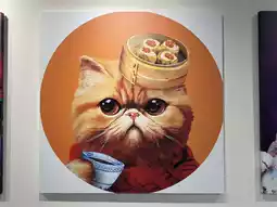 Continuing with the artistic atmosphere, check out #LeonLollipop's art exhibition. Wof's favorite is "#TouchingCatDrinkingTeaEatingSiomai".