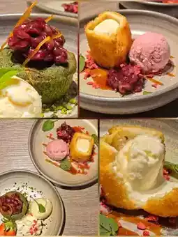 This ice cream sandwich features a crispy fried exterior with ice cream inside, offering a delightful contrast of textures. The strawberry ice cream adds to the overall satisfaction.