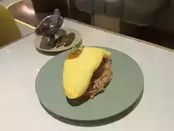 I chose the Wagyu burger and foie gras omelette rice ($158). The Wagyu burger under the egg was very thick.