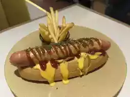 The cheese and mushroom hot dog ($92) looks just like the one on the menu. Even a girl might not be able to finish it. The bread is soft and the sausage is thick. It is topped with cheese and mushrooms, which is very rich. The side dish of fries is small and crispy and delicious.