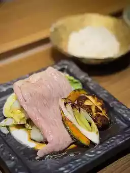 The decor is simple Japanese wooden style, all seats are pre-seat cooking, and every diner can enjoy the master's impromptu preparation of barbecue and sukiyaki meals.